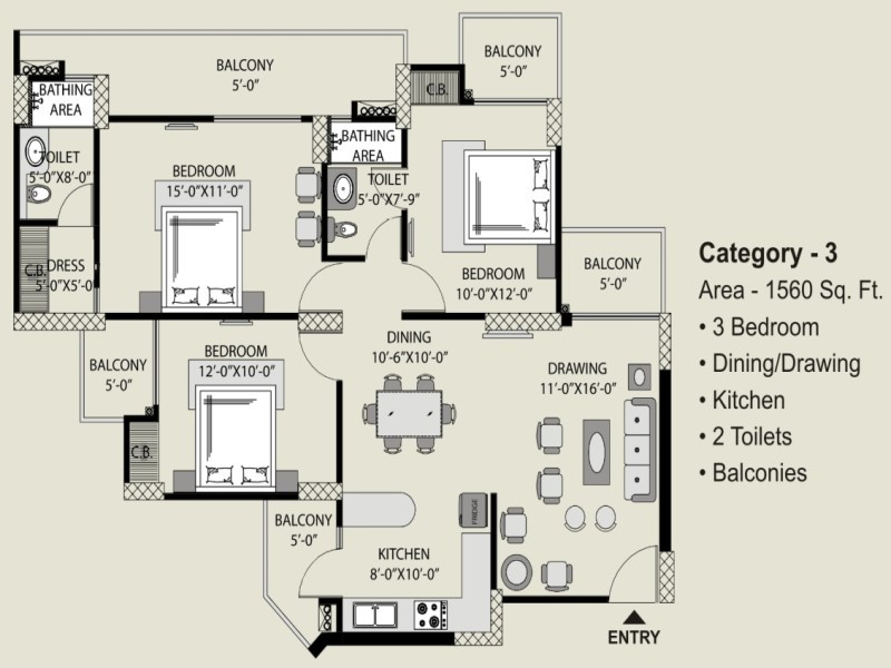 Vitrified tiles (2x2) in the drawing room, kitchen, and two bedrooms. Wooden laminated flooring in master bedrooms. Ceramic tiles in bathrooms and balconies.